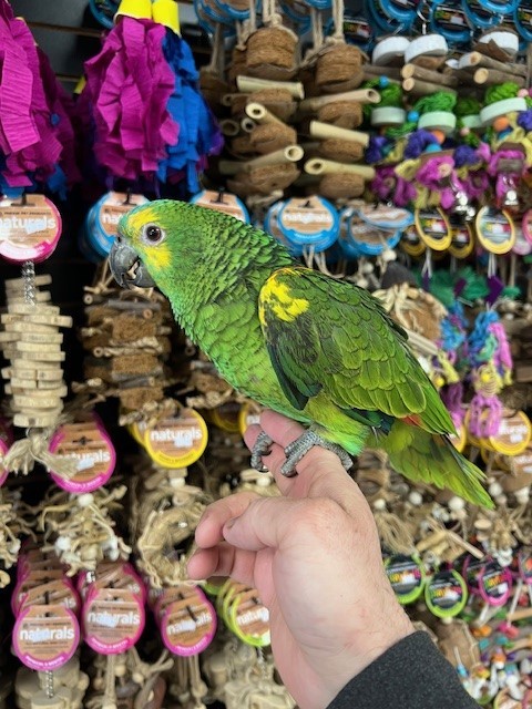 Blue Front Amazon hand fed baby available ready for its new home. For more info call 773-317-3785. We are located at 710 Lee St., Des Plaines, IL 60016.
