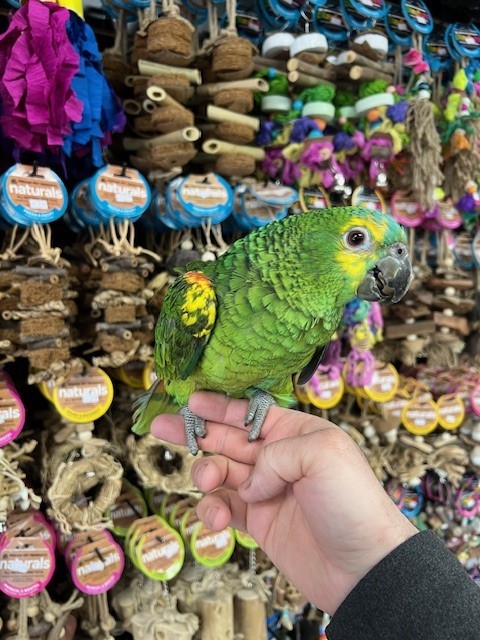 Blue Front Amazon hand fed baby available ready for its new home. For more info call 773-317-3785. We are located at 710 Lee St., Des Plaines, IL 60016.