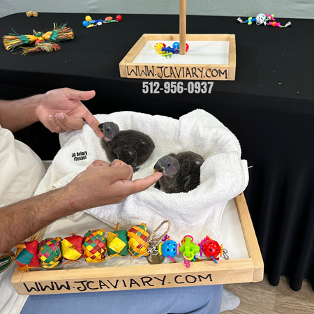 All our babies come with a health certificate from an Avian vet and a 7 days health guarantee after the purchase. This means you have additional 7 days to have our baby re-checked by your Avian vet and let us know. All babies we sell are DISEASE TESTED negative for Polyomavirus (PVD), Avian Bornavirus (ABV), Psittacine Beak and Feather Disease (PBFD), and Chlamydia psittaci. Paperwork will be provided upon purchase. Please visit our website for complete details. www.jcaviary.com/health-guarantee