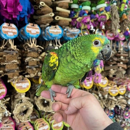 Blue Front Amazon hand fed baby available ready for its new home. For more info call 773-317-3785. We are located at 710 Lee St., Des Plaines, IL 60016.