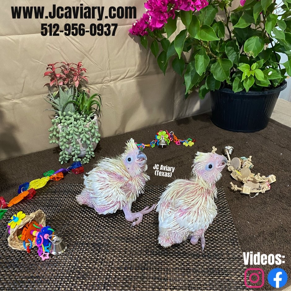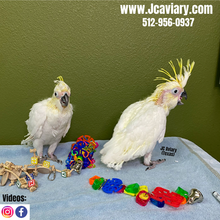 Accepting reservations on these adorable Sulphur crested cockatoo babies. They are currently being hand-fed and will be fully trained as well. They will be on a healthy diet of organic pellets and vegetables. All our babies are very well socialized, tame and sweet. Please visit our website for full detailed info on these babies -- www.Jcaviary.com-- Please call us to reserve your baby !! 512-956-0937 - Shipping available via Delta Airlines-- All babies are DISEASE TESTED and come with avian vet documents as well. (Deposit: $2500 required to reserve each baby) Videos available on Facebook: https://facebook.com/jcaviary