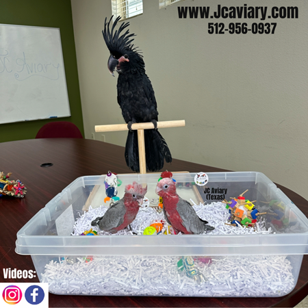 Accepting reservations on these adorable Galah/ rose breasted cockatoo babies. They are now being hand-fed and will be fully trained as well. They will be on a healthy diet of organic pellets and vegetables. All our babies are very well socialized, tame and sweet. Please visit our website for full detailed info on these babies -- www.Jcaviary.com-- Please call us to reserve your baby !! 512-956-0937 - Shipping available via Delta Airlines-- All babies are DISEASE TESTED and come with avian vet documents as well. (Deposit: $2500 required to reserve each baby) Videos available on Facebook: https://facebook.com/jcaviary