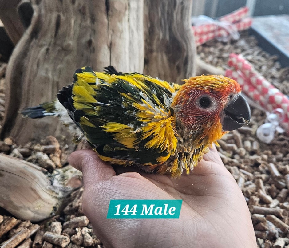 **Baby Conures Available – Front Royal, VA** Currently available: * Sun Conure * High Yellow Sun Conure * Opamint Green Cheek * High Red Suncheek * Turquoise Green Cheek * High Red Pineapple Green Cheek PBFD tested. Sun conures DNA verified. Green cheek DNA pending. Almost weaned. Deposits accepted to hold. Please message for more information, pricing, and current photos.