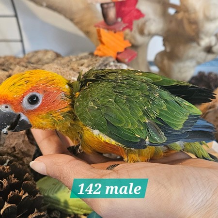**Baby Conures Available – Front Royal, VA** Currently available: * Sun Conure * High Yellow Sun Conure * Opamint Green Cheek * High Red Suncheek * Turquoise Green Cheek * High Red Pineapple Green Cheek PBFD tested. Sun conures DNA verified. Green cheek DNA pending. Almost weaned. Deposits accepted to hold. Please message for more information, pricing, and current photos.
