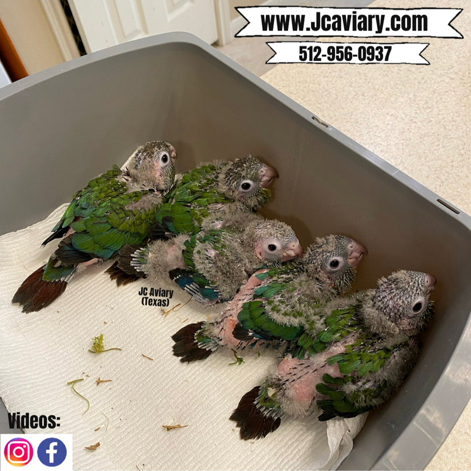Accepting reservations on these adorable Crimson bellied conure babies. They are now being hand-fed and will be fully trained as well. They will be on a healthy diet of organic pellets and vegetables. All our babies are very well socialized, tame and sweet. Please visit our website for full detailed info on these babies -- www.Jcaviary.com-- Please call us to reserve your baby !! 512-956-0937 - Shipping available via Delta Airlines-- All babies are DISEASE TESTED and come with avian vet documents as well. (Deposit: $800 required to reserve each baby) Videos available on Facebook: https://facebook.com/jcaviary
