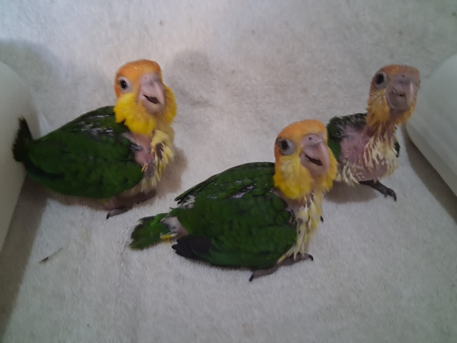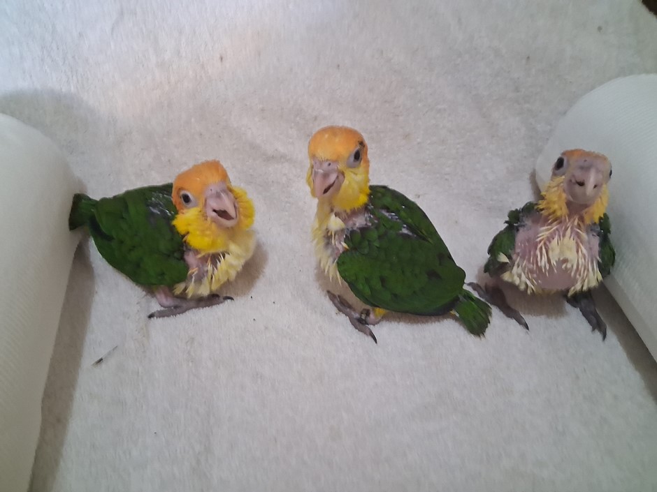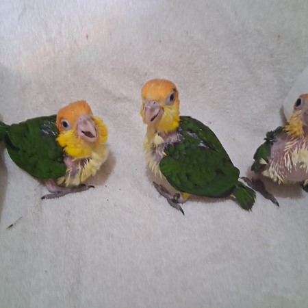 These three DNA sexed females are sisters from the same clutch. I do have unrelated males also. The first one of the sisters hatched on the fourteenth of February. The second sister on the 16th and the youngest of the three on the 19th. I left these girls with their parents until the youngest one had been with them for a full month so, they could acquire some of the beneficial attributes that their parents contributed to the good health of these babies. I welcome people to come to my home when acquiring one these beautiful girls. I feel like there is no surprises that way and people can see the exemplary qualities maintained within my babies. These girls will be ready for their new homes once weaned, somewhere between the fourteenth and twenty-eighth of May. I never force wean by babies. I require a three hundred dollar deposit to hold a baby for the purchaser. For any further information, please contact me at 409 255-1842. Please check out my reviews at Birdbreeders.com. under Altum Aviary's.