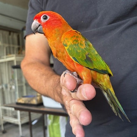 Red Factor Sun Conure - DNA Female - $700 - recently weaned from being hand fed and now eating a pellet diet - Healthy and Tame - Ready to be shipped. Shipping is with Delta Airlines for $165 and the shipping container is $35. Payment through Zelle or PayPal. 1435 A