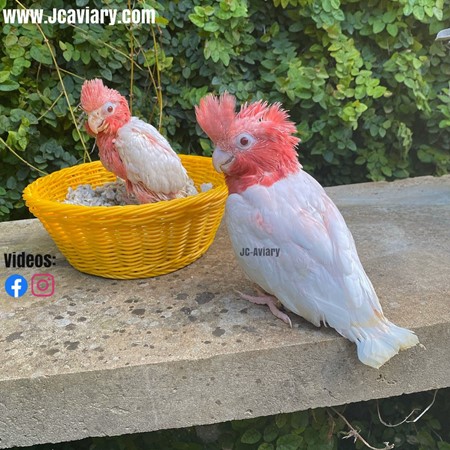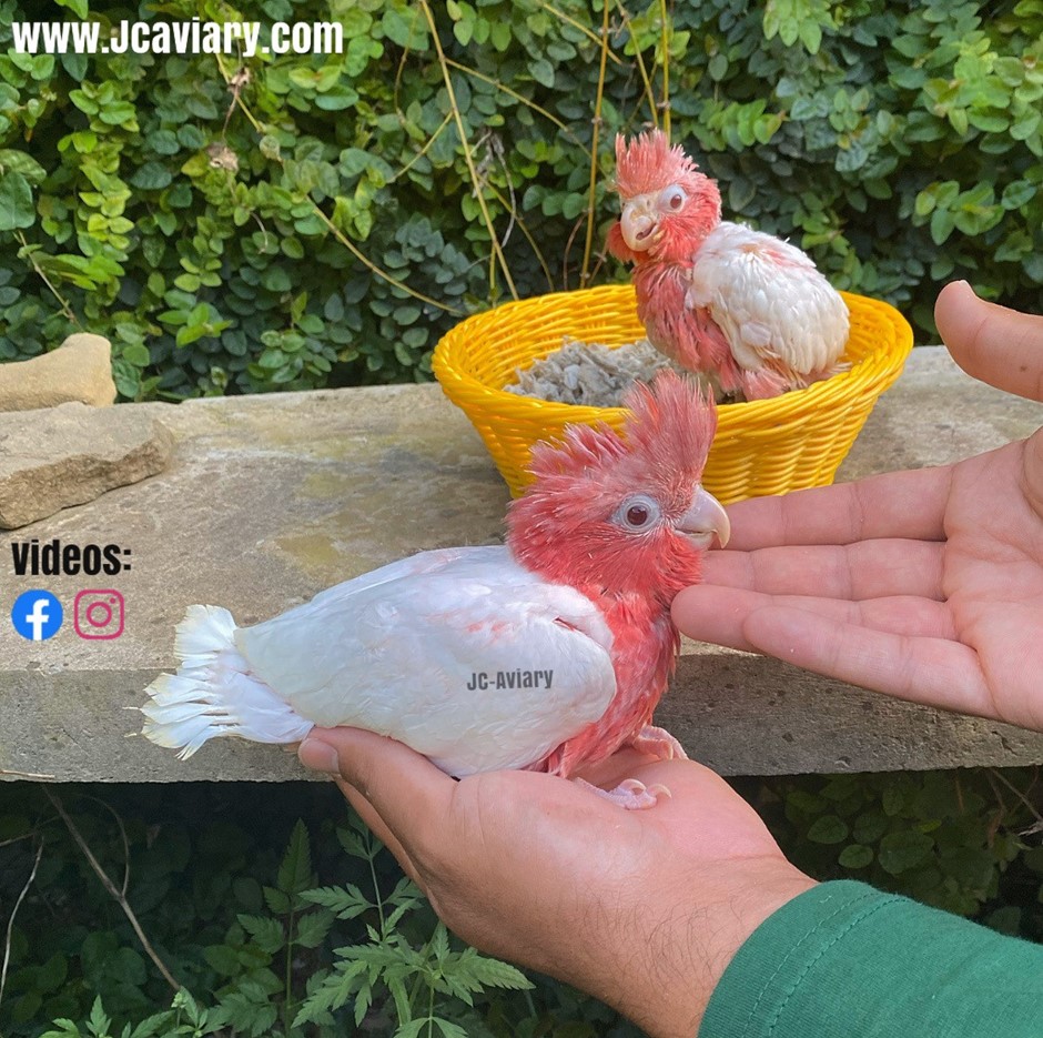 Accepting reservations on these rare -- Lutino -- Galah cockatoo babies. They are now being hand-fed and will be fully trained as well. They will be on a healthy diet of organic pellets and vegetables. All our babies are very well socialized, tame and sweet. Please visit our website for full detailed info on these babies -- www.Jcaviary.com-- Please call us to reserve your baby !! 512-956-0937 - Shipping available via Delta Airlines-- All babies are DISEASE TESTED and come with avian vet documents as well. (Deposit: $2500 required to reserve each baby) Videos available on Facebook: https://facebook.com/jcaviary