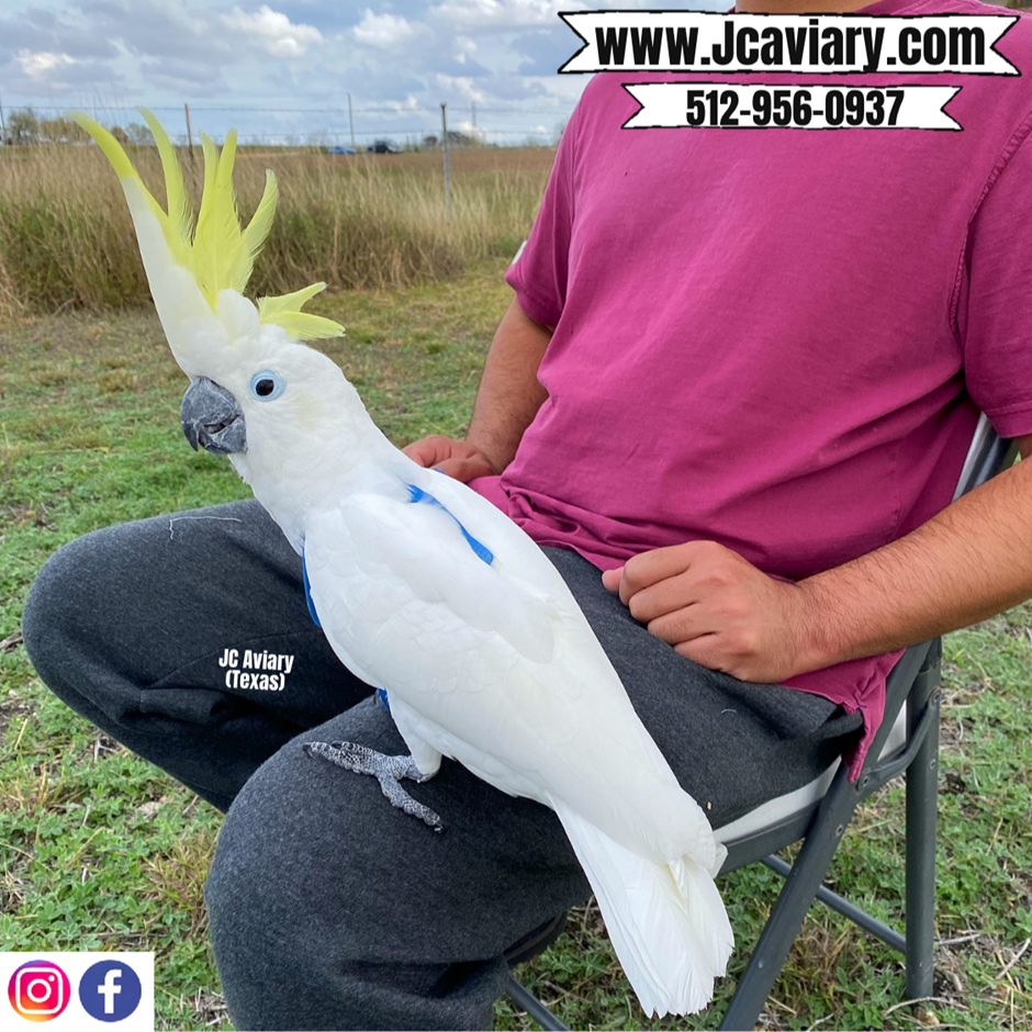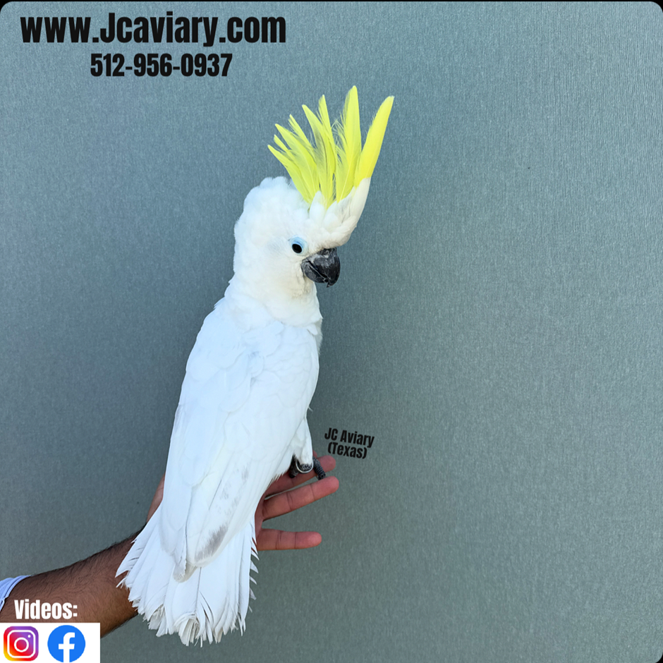 Accepting reservation on this adorable Triton cockatoo baby. He is still being hand-fed and trained. He will be on a healthy diet of organic pellets and vegetables. All our babies are very well socialized, tame and sweet. Please visit our website for full detailed info on these babies -- www.Jcaviary.com-- Please call us to reserve your baby !! 512-956-0937 - Shipping available via Delta Airlines-- All babies are DISEASE TESTED and come with avian vet documents as well. (Deposit: $2500 required to reserve each baby) Videos available on Facebook: https://facebook.com/jcaviary