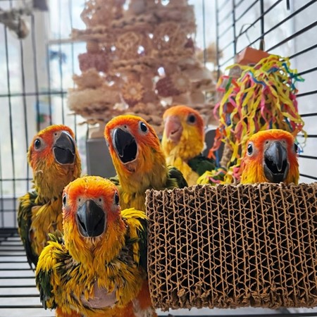 Rock the Flock is offering a handsome sun conure raised with an emphasis on temperament, handling, nutrition, and a carefully supported start. This bird has received close attention to socialization, early development, and proper nutritional support to help encourage confidence, engagement, and a smooth transition into the right home.