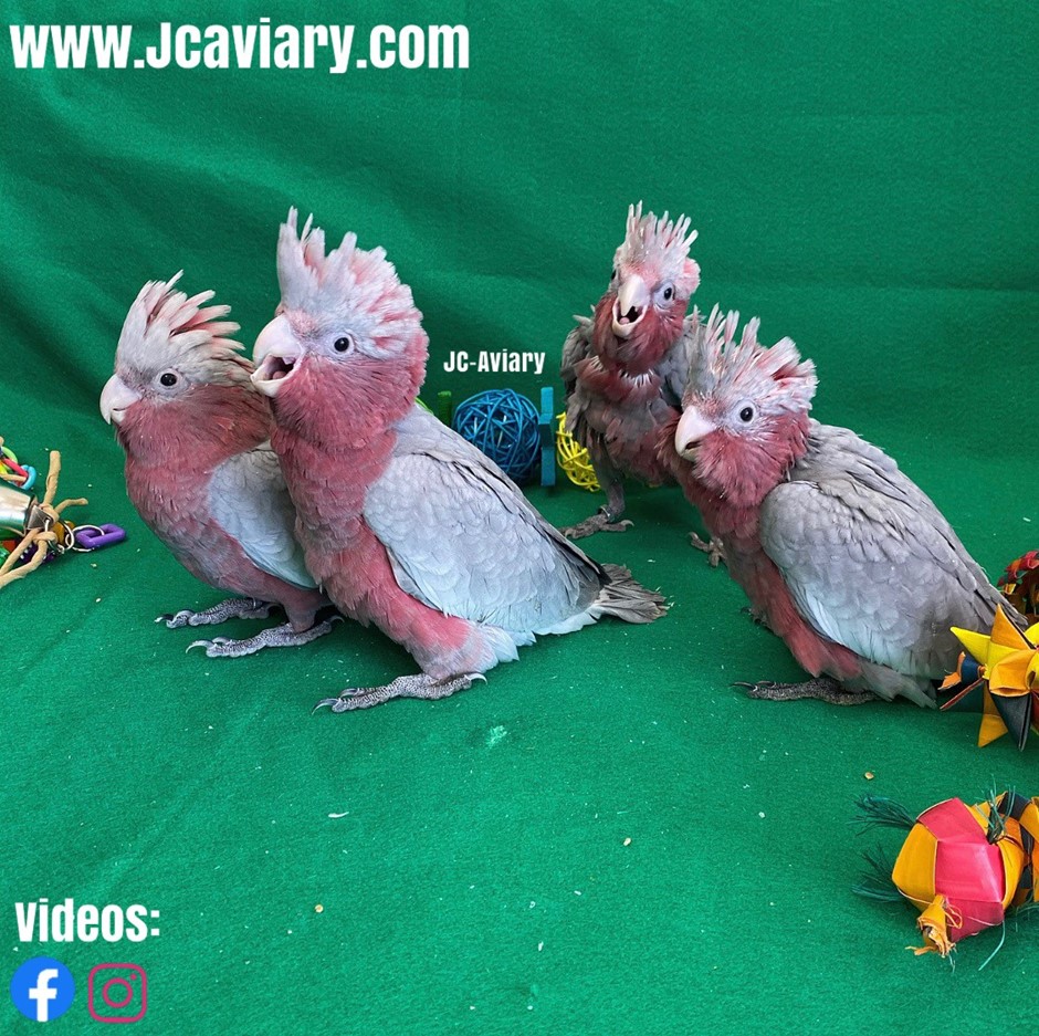 Accepting reservations on these adorable Galah/ rose breasted cockatoo babies. They are now being hand-fed and will be fully trained as well. They will be on a healthy diet of organic pellets and vegetables. All our babies are very well socialized, tame and sweet. Please visit our website for full detailed info on these babies -- www.Jcaviary.com-- Please call us to reserve your baby !! 512-956-0937 - Shipping available via Delta Airlines-- All babies are DISEASE TESTED and come with avian vet documents as well. (Deposit: $2500 required to reserve each baby) Videos available on Facebook: https://facebook.com/jcaviary
