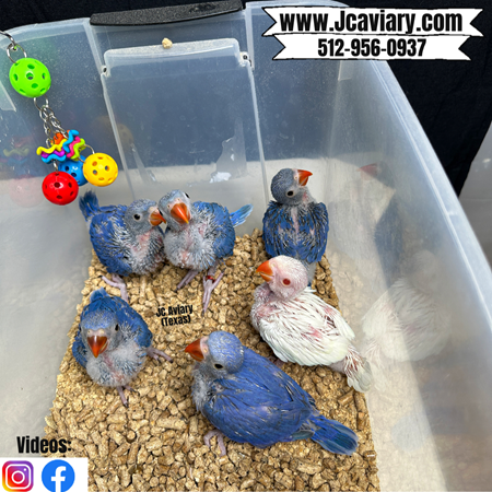 Accepting reservations on these adorable VIOLET indian ringneck babies. They are now being hand-fed and will be fully trained as well. DNA females for $850 and males $1200 each. They will be on a healthy diet of organic pellets and vegetables. All our babies are very well socialized, tame and sweet. Please visit our website for full detailed info on these babies -- www.Jcaviary.com-- Please call us to reserve your baby !! 512-956-0937 - Shipping available via Delta Airlines-- All babies are DISEASE TESTED and come with avian vet documents as well. (Deposit: $400 required to reserve each baby) Videos available on Facebook: https://facebook.com/jcaviary