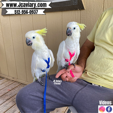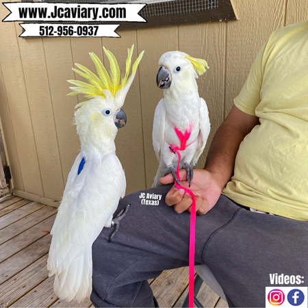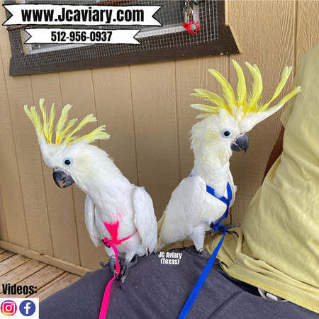 Accepting reservations on these adorable Triton Cockatoo babies. They are still being hand-fed and will be fully trained as well. They will be on a healthy diet of organic pellets and vegetables. All our babies are very well socialized, tame and sweet. Please visit our website for full detailed info on these babies -- www.Jcaviary.com-- Please call us to reserve your baby !! 512-956-0937 - Shipping available via Delta Airlines-- All babies are DISEASE TESTED and come with avian vet documents as well. (Deposit: $2500 required to reserve each baby) Videos available on Facebook: https://facebook.com/jcaviary
