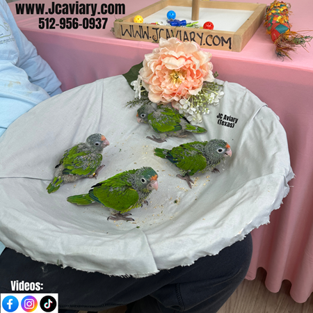 Accepting reservations on these adorable Half-moon conure babies. They are now being hand-fed and will be trained as well. They will be on a healthy diet of organic pellets and vegetables. All our babies are very well socialized, tame and sweet. Please visit our website for full detailed info on these babies -- www.Jcaviary.com-- Please call us to reserve your baby !! 512-956-0937 - Shipping available via Delta Airlines-- All babies are DISEASE TESTED and come with avian vet documents as well. (Deposit: $300 required to reserve each baby) Videos available on Facebook: https://facebook.com/jcaviary