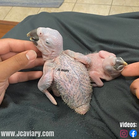 All our babies come with a health certificate from an Avian vet and a 7 days health guarantee after the purchase. This means you have additional 7 days to have our baby re-checked by your Avian vet and let us know. All babies we sell are DISEASE TESTED negative for Polyomavirus (PVD), Avian Bornavirus (ABV), Psittacine Beak and Feather Disease (PBFD), and Chlamydia psittaci. Paperwork will be provided upon purchase. Please visit our website for complete details. www.jcaviary.com/health-guarantee