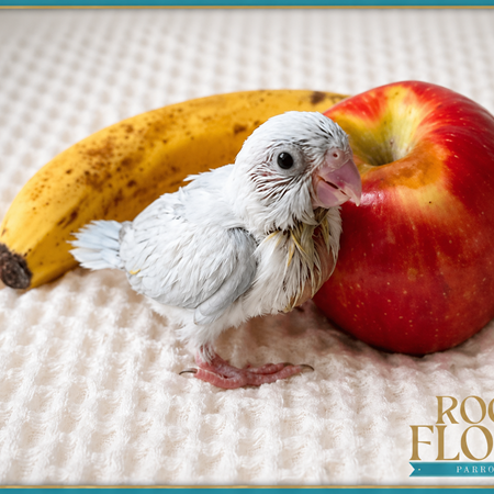 This little girl is hand-fed, hand-raised, tame, and well socialized. She has a beautiful soft dilute/pastel-type expression with clean color that should continue developing as she matures.