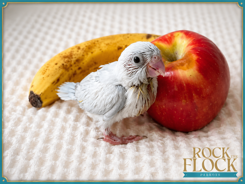Soft pastel-type female parrotlet available from Rock the Flock.