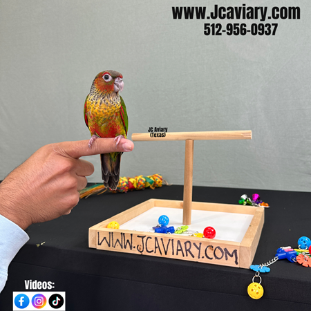 Beautiful and incredibly sweet Voren's black-cap conure baby. She is still being hand-fed but almost weaned. She will be on a healthy diet of organic pellets and vegetables. All our babies are very well socialized, tame and sweet. Please visit our website for full detailed info on these babies -- www.Jcaviary.com-- Please call us to reserve your baby !! 512-956-0937 - Shipping available via Delta Airlines-- All babies are DISEASE TESTED and come with avian vet documents as well. (Deposit: $500 required to reserve each baby) Videos available on Facebook: https://facebook.com/jcaviary