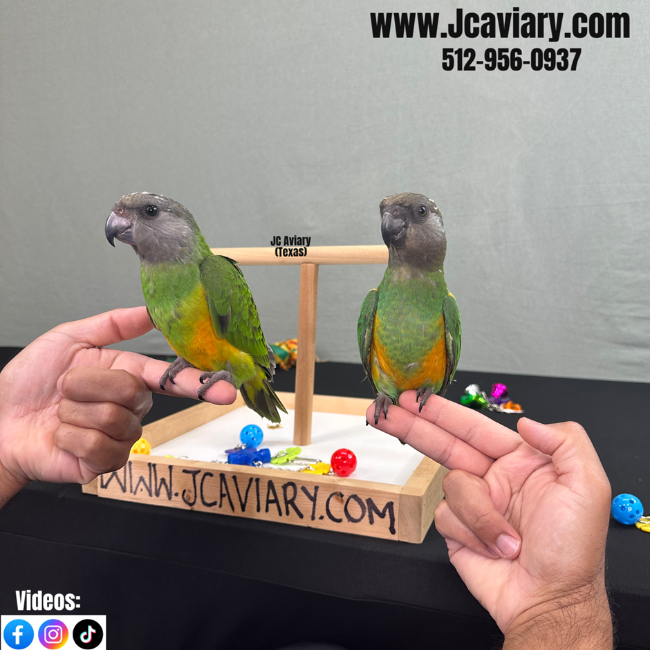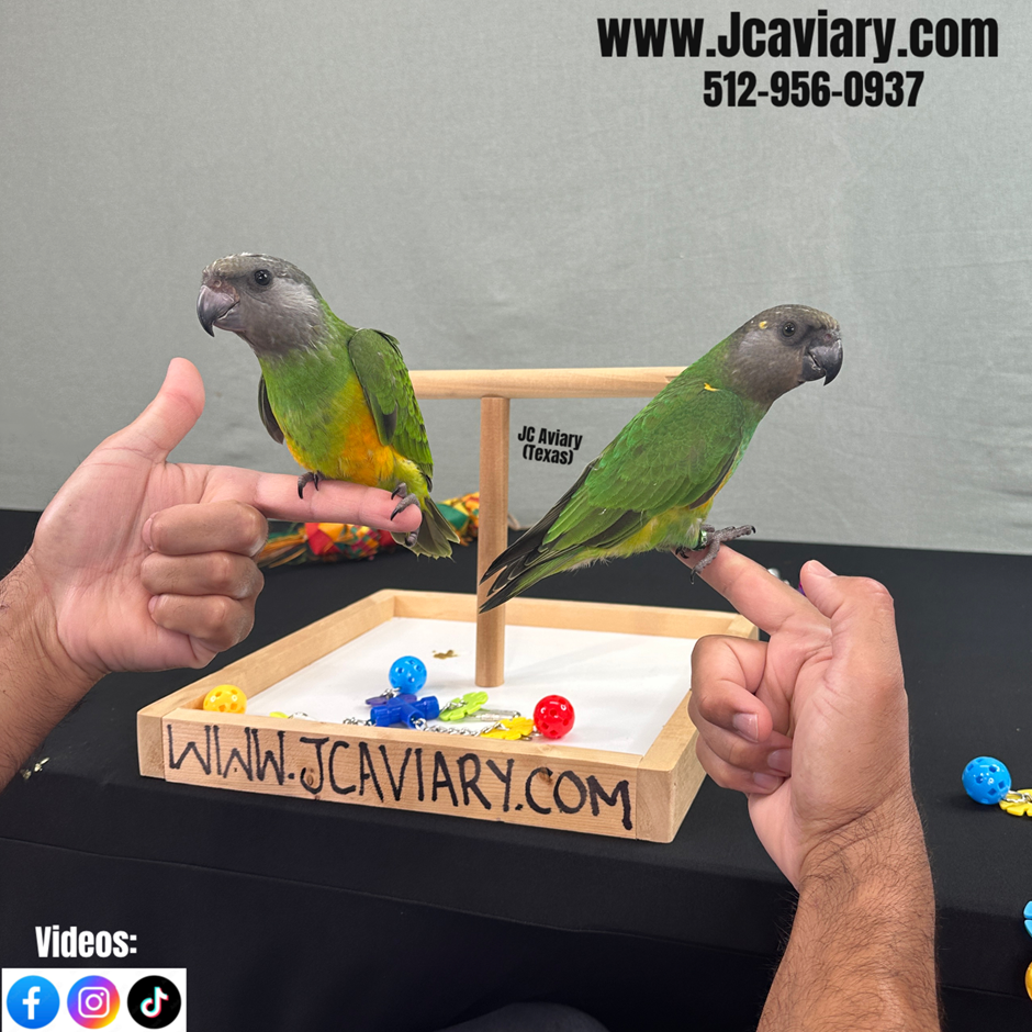 Incredibly sweet and trained Senegal parrot babies ready now for their forever homes. Both are weaned on a healthy diet of organic pellets and vegetables. All our babies are very well socialized, tame and sweet. Please visit our website for full detailed info on these babies -- www.Jcaviary.com-- Please call us to reserve your baby !! 512-956-0937 - Shipping available via Delta Airlines-- All babies are DISEASE TESTED and come with avian vet documents as well. (Deposit: $800 required to reserve each baby) Videos available on Facebook: https://facebook.com/jcaviary
