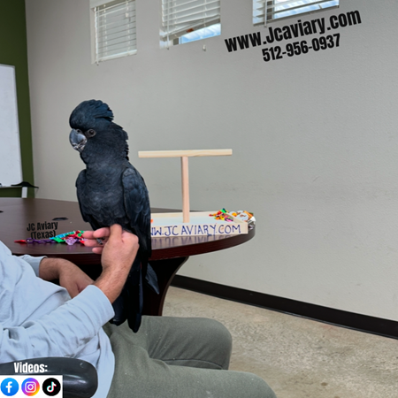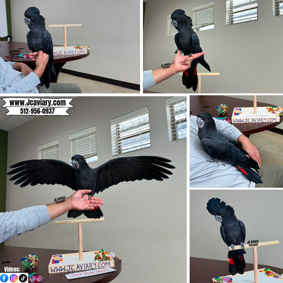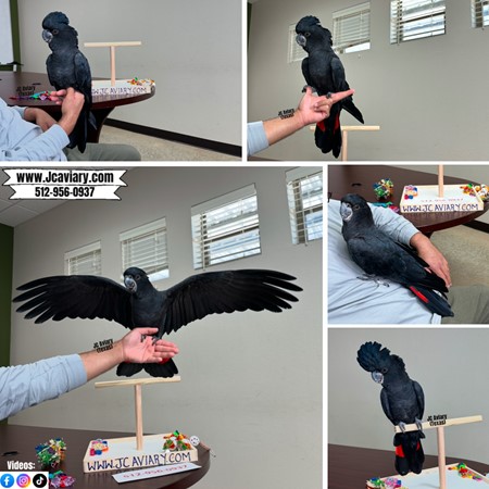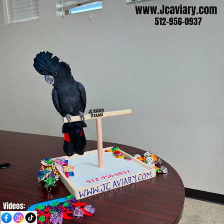 Rare--for serious inquires please call us-- Hand-fed, Incredibly sweet red-trailed black cockatoo ready now for his forever home. He's on a healthy diet of pellets, nuts and vegetables. All our babies are very well socialized, tame and sweet. Please visit our website for full detailed info on these babies -- www.Jcaviary.com-- Please call us to reserve your baby !! 512-956-0937 - Shipping available via Delta Airlines-- All babies are DISEASE TESTED and come with avian vet documents as well. (Deposit: $10,000 required to reserve this birdie) Videos available on Facebook: https://facebook.com/jcaviary