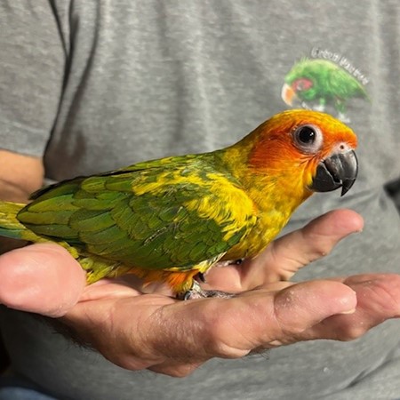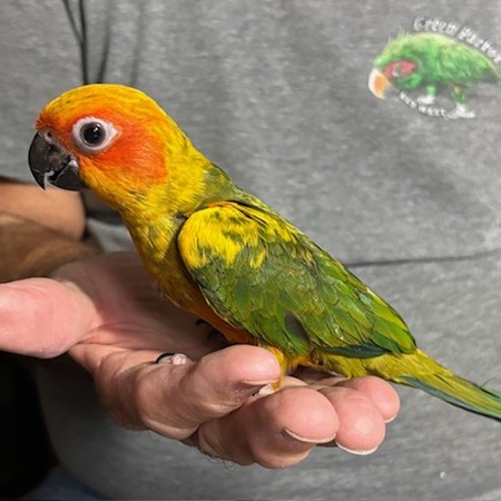 Sun Conure - DNA Female - $450 - Tame & Social - Recently weaned from being hand fed - Now eating a pellet diet and ready to be shipped. Shipping is with Delta for $165 and the shipping container is $35. Accept payment through PayPal or Zelle. 316