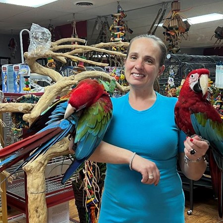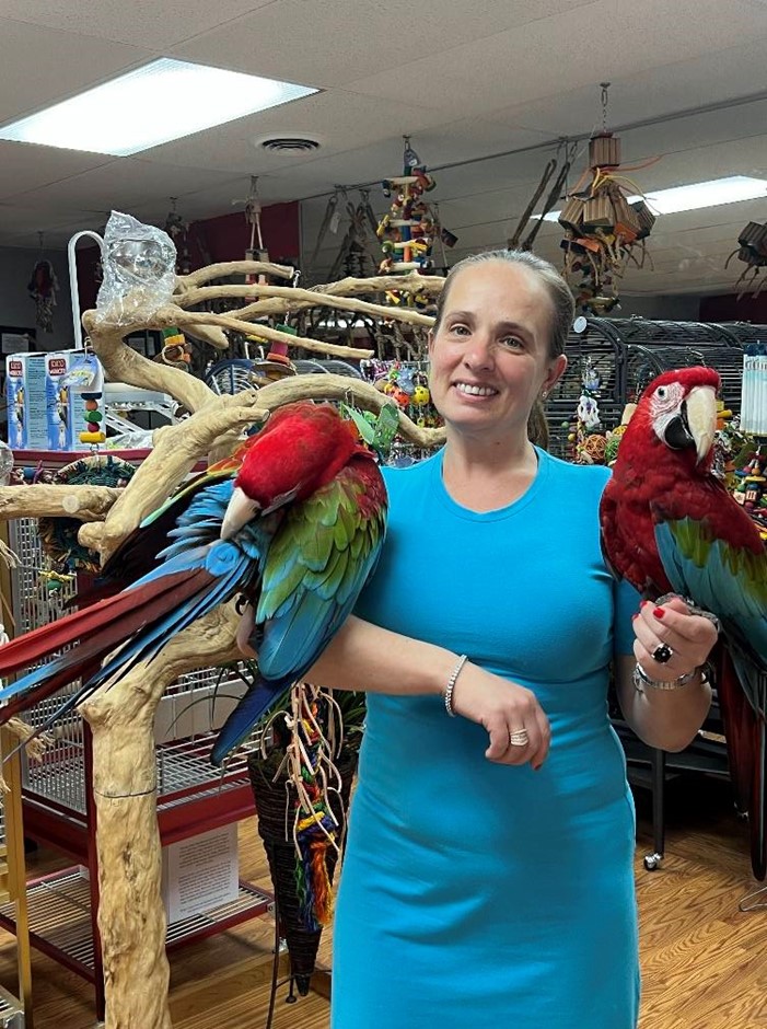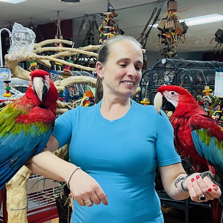 This Green Wing Macaw is available. All of our beautiful birds are raised with care and love. We put our hearts into these magnificent creatures. We offer pick in the our store located in Stroudsburg PA 18360. Any questions please call 646-496-5005. Thank you!