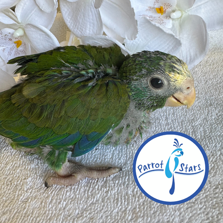 Baby White Capped Pionus Available! Pionus are known for their gentle, laid back personalities. They are often easy going and do well with dynamic lifestyles. They can be affectionate and playful at times and thoroughly enjoy companionship. Each Pionus is unique but like any parrot, they all require lots of time and commitment. It is important to make sure they have a large cage, they need enough space to exercise and move freely so that they do not get overweight. At Parrot Stars we focus on education, nutrition, and conservation. We work very hard to help educate our customers on parrot companionship. Prior to taking a bird home, we will provide information on proper housing, creating a safe environment, diet, behavior, hormones and much more. No question will go unanswered. Every hand fed baby is weaned on to a high variety diet. They are weaned onto fruits and veggies, a soak and sprout mix we make here in store, high variety seed that we also make here in store, and naturally colored pellet. If you have questions regarding this baby, or any others that we have available, please give us a call! Feel free to follow us on Facebook @parrotstars for more pictures, videos and information.
