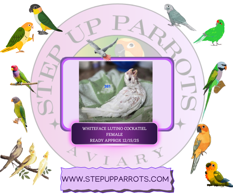 Step Up Parrots Aviary in Pensacola, Florida is excited to offer a charming, stunning cockatiel seeking a devoted forever family! We pride ourselves on raising happy, healthy, and well-socialized birds, and these little ones are no exception. This beautiful Cockatiel, just a baby still, hatched October 28, 2025,is a sex-linked female, is projected to be ready to go 12/15/25 and has been hand-fed from a young age, ensuring a sweet and trusting temperament. She is turning out to be very cuddly, enjoying people, snuggles and play time. What You Get When You Adopt From Us: • A healthy, vibrant Cockatiel from Disease Tested parents and a closed aviary. • DNA Certificates provided when and as available • Hand-tamed and well-socialized • Being weaned to a premium diet of Higgins Safflower seed mix, Zupreem pellet, and fresh chop We are committed to finding the best homes for our birds. If you're ready to provide a nurturing and enriching environment for a wonderful, feathered companion, please reach out! Located in Pensacola, Florida. Contact us today to get information and see if one of our cockatiels is the perfect fit for your family! Shipping is available via Delta Cargo
