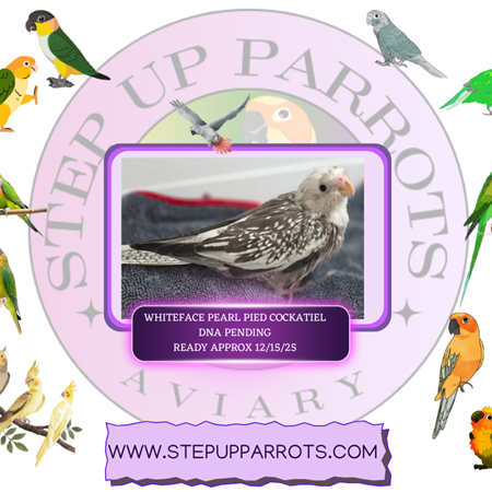 Step Up Parrots Aviary in Pensacola, Florida is excited to offer a charming, stunning Whiteface Pearl Pied cockatiel seeking a devoted forever family! We pride ourselves on raising happy, healthy, and well-socialized birds, and these little ones are no exception.