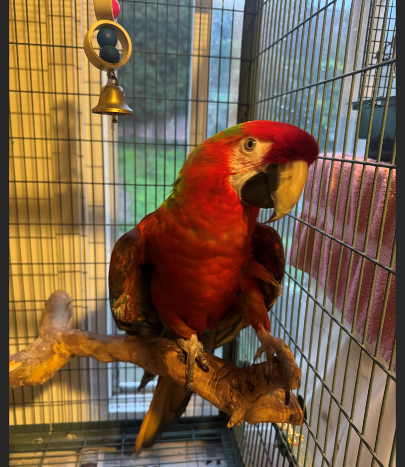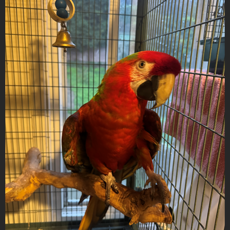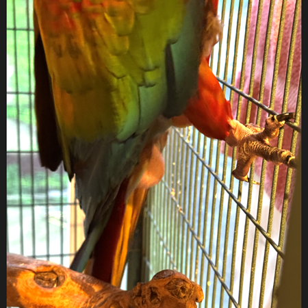 I have a Camelot Macaw. She is between 10 and 15 years old and is red-dominant with beautiful coloration. She is not very hand-tame, and it will require a considerable amount of time and effort to further tame her. She may do well as a breeder; however, that may not be the best option for her.