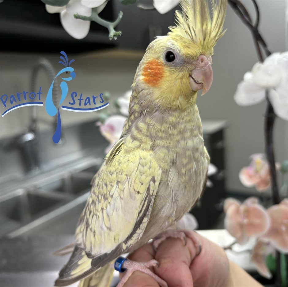 The Cockatiel is a small parrot species and the only member of the genus Nymphicus. It is closely related to cockatoos and shares characteristics typical of the Cacatuidae family, including a prominent crest and powder down. Cockatiels exhibit sexual dimorphism: wild-type gray males generally display brighter facial coloration with a yellow face and orange cheek patches. Wild-type females typically have more muted facial colors, brownish body coloration and barring on the underside of the tail feathers. In the wild, Cockatiels inhabit arid and semi-arid regions of Australia, including scrublands, open woodlands, grasslands, and areas near water sources. They are highly nomadic, often traveling in large flocks.