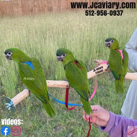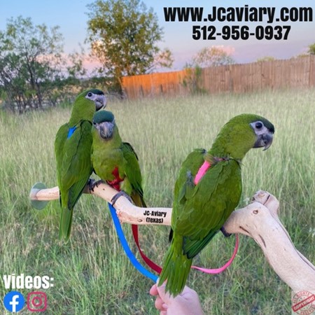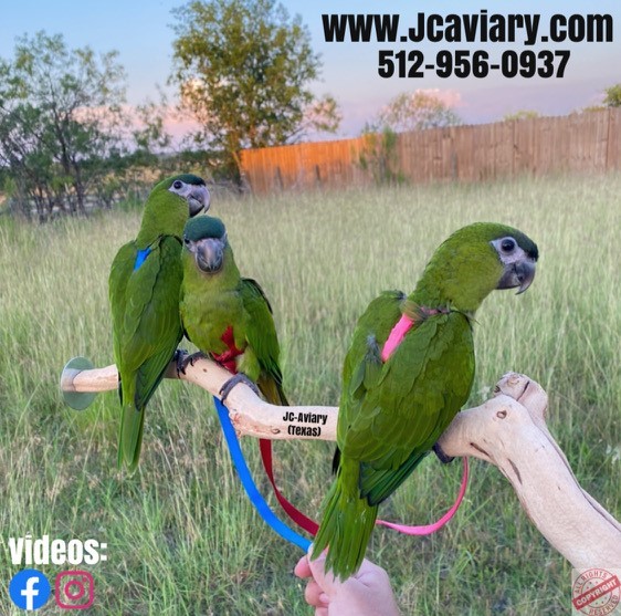 Incredibly sweet, hand-fed, tame and well trained Hahns mini-macaw babies ready now for their forever homes. They are weaned on a healthy diet of organic pellets and vegetables. All our babies are very well socialized, tame and sweet. Please visit our website for full detailed info on these babies -- www.Jcaviary.com-- Please call us to reserve your baby !! 512-956-0937 - Shipping available via Delta Airlines-- All babies are DISEASE TESTED and come with avian vet documents as well. (Deposit: $1500 required to reserve each baby) Videos available on Facebook: https://facebook.com/jcaviary