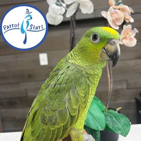 The Yellow Naped - Orange Winged Amazon Hybrid is a medium-sized parrot, both parent species being within the family Psittacidae. It is characterized by predominantly green plumage with yellow and blue accents on the forehead. In the wild, both Yellow Naped Amazons and Orange Winged Amazons inhabit dry forests, tropical deciduous forests, and savanna regions throughout parts of Central and South America respectively. Both species nest primarily in tree cavities and are typically found in small flocks.