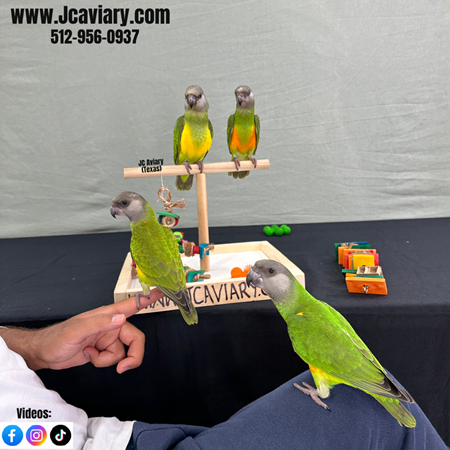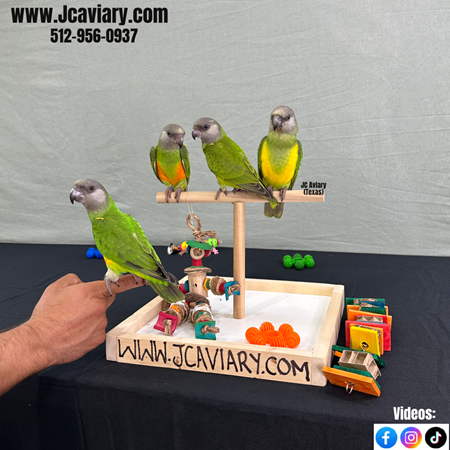 Incredibly sweet and fully trained Senegal parrots ready now for their forever homes. They are weaned on a healthy diet of organic pellets and vegetables. . All our babies are very well socialized, tame and sweet. Please visit our website for full detailed info on these babies -- www.Jcaviary.com-- Please call us to reserve your baby !! 512-956-0937 - Shipping available via Delta Airlines-- All babies are DISEASE TESTED and come with avian vet documents as well. (Deposit: $1500 required to reserve each baby) Videos available on Facebook: https://facebook.com/jcaviary