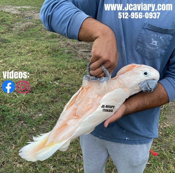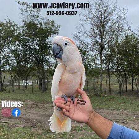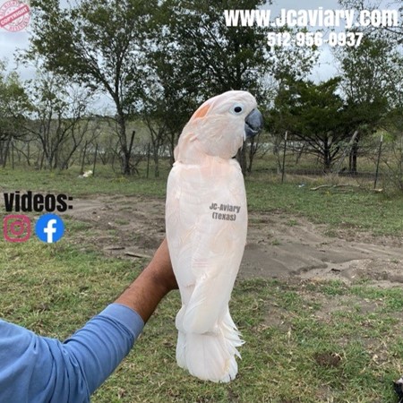 Incredibly sweet, hand-fed, tame and fully trained Moluccan cockatoo baby ready now for his forever homes. He is weaned on a healthy diet of organic pellets and vegetables. All our babies are very well socialized, tame and sweet. Please visit our website for full detailed info on these babies -- www.Jcaviary.com-- Please call us to reserve your baby !! 512-956-0937 - Shipping available via Delta Airlines-- All babies are DISEASE TESTED and come with avian vet documents as well. (Deposit: $5000 required to reserve each baby) Videos available on Facebook: https://facebook.com/jcaviary