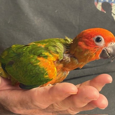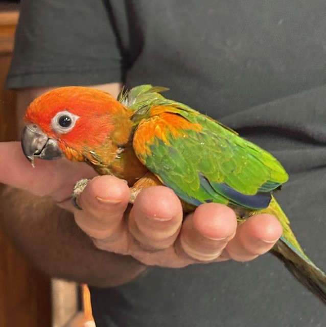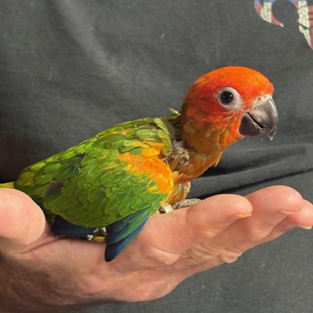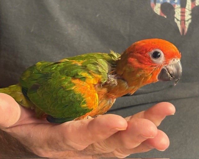 Red Factor Sun Conure - DNA Male - being hand fed at this time - $700 weaned - will be weaned to eat a pellet diet - $50 deposit will hold this bird until it is weaned and eating well on its own and ready to be shipped. Shipping is with Delta Airlines for $165 and the shipping container is $35. Payment through Zelle or PayPal. 313 O