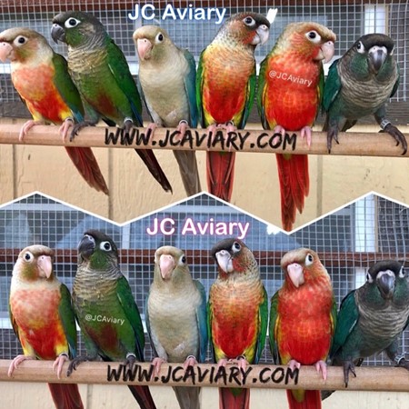 Accepting reservations on these adorable Green cheek conure babies. We have many colors available. They are all still being hand-fed and will be trained as well. Price range $475 to $850-- They will be on a healthy diet of organic pellets and vegetables. All our babies are very well socialized, tame and sweet. Please visit our website for full detailed info on these babies -- www.Jcaviary.com-- Please call us to reserve your baby !! 512-956-0937 - Shipping available via Delta Airlines-- All babies are DISEASE TESTED and come with avian vet documents as well. (Deposit: $300 required to reserve each baby) Videos available on Facebook: https://facebook.com/jcaviary
