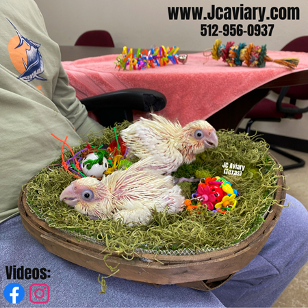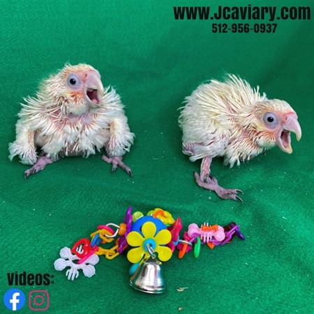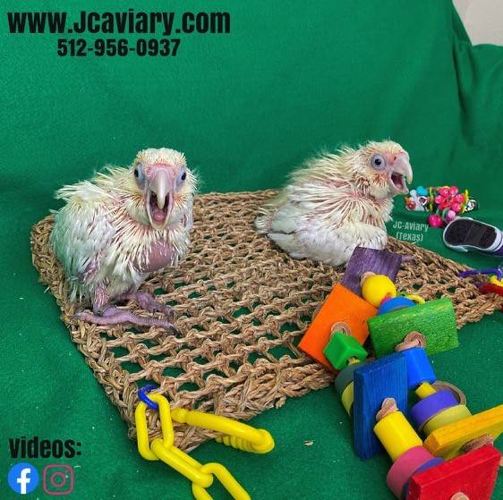 Accepting reservations on these adorable Slender billed cockatoo babies. They are currently being hand-fed and will be fully trained as well. They will be on a healthy diet of organic pellets and vegetables. All our babies are very well socialized, tame and sweet. Please visit our website for full detailed info on these babies -- www.Jcaviary.com-- Please call us to reserve your baby !! 512-956-0937 - Shipping available via Delta Airlines-- All babies are DISEASE TESTED and come with avian vet documents as well. (Deposit: $2500 required to reserve each baby) Videos available on Facebook: https://facebook.com/jcaviary