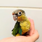 Say hello to Larry, our Yellow-Sided Green Cheek Conure! They are super playful and have a ton of energy. Such a fun feathery friend, so if that's wha...