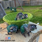 Beautiful baby yellowside turquoise and cinnamon turquoise green cheeks! Will be ready mid December. Waiting for DNA to come back to see if boys or gi...