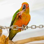 ONLY ONE AVAILABLE! Act Fast! Wave "Hi" to Baby Lava, a Four Month old hand-raised Red Factor baby Sun Conure. Lava loves getting one-on-one attention...